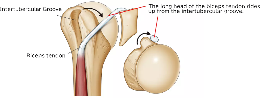 Even in the absence of a labrum injury, damage to parts of the rotator cuff, such as the supraspinatus tendon or subscapularis tendon, can increase friction on the long head of the biceps tendon within the intertubercular groove. This can lead to damage to the tendon or exacerbate the severity of an existing injury.