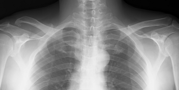This X-ray was taken when he first came to my clinic in 2018. This shows dislocations of the right acromioclavicular. He also had pains on the shoulder when raising arms. In addition, he felt stiffness and discomfort on the neck, shoulder, and scapular.
