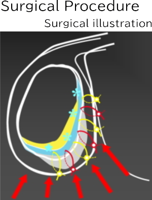 At our clinic, for cases of bony Bankart lesions or in contact sports athletes, we use a technique called the dual suture method, in which we insert two or three double-loaded suture anchors (anchors with two sutures each) into the glenoid to repair the detached ligaments.