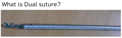 This is a screw with an attached suture. The tip is anchored into the bone and catches firmly, so the suture does not come out easily when pulled.