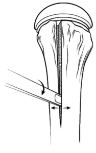 ・In many cases, making a small split in the humerus with a chisel allows the procedure to proceed more smoothly.