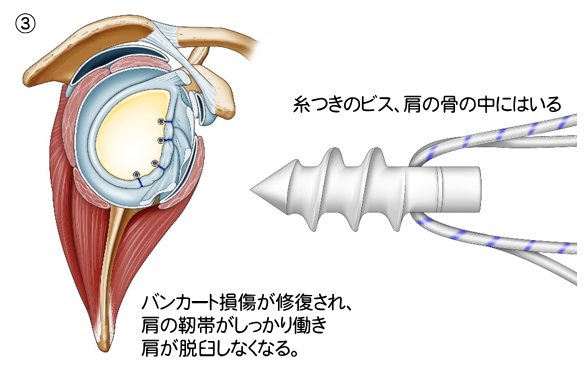 『糸つきのビスを関節窩という骨にうちこみ、骨を関節唇靭帯複合体に装着して、その糸を縫い合わすということです。』